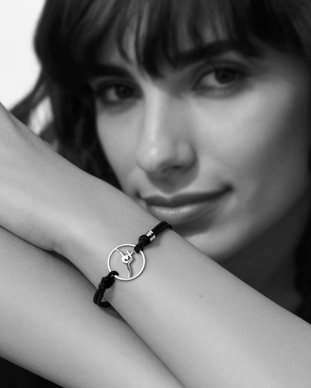 Pulsera de GIMNASIA RITMICA fabricada en acero Inoxidable, con estructura cocida a mano en hilo de Nylon resistente. Con medida universal, totalmente ajustable para cualquier muñeca, con nudos corredizos.