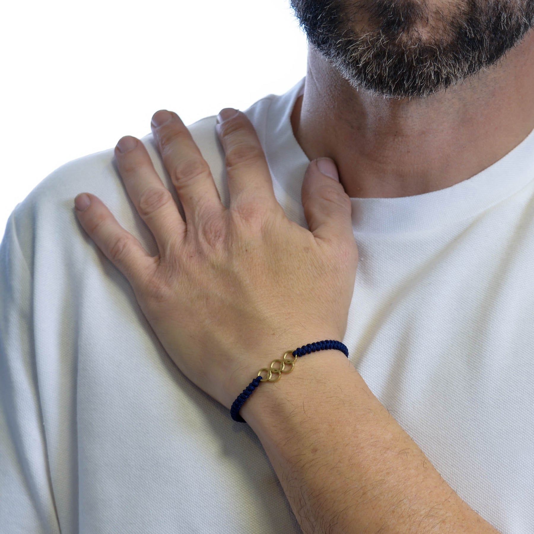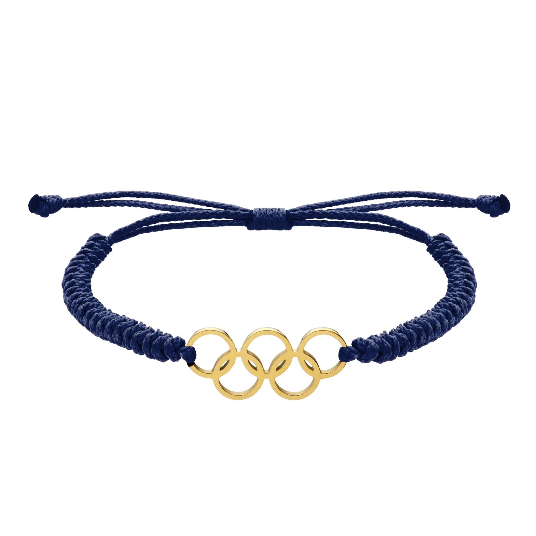 Motivos principales: AROS OLIMPICOS EN ACERO INOXIDABLE COLOR ORO, NYLON TRANZADO COLOR AZUL. HECHO A MANO EN NUESTRA PROPIA FABRICA.